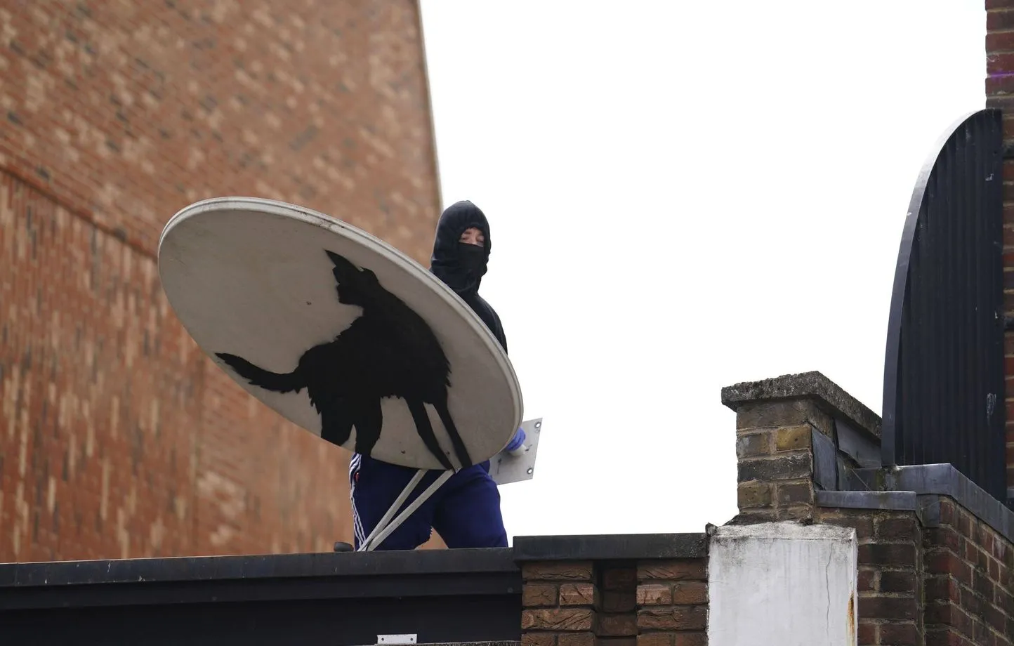 La police londonienne a indiqué avoir été appelée pour « le vol d’une antenne parabolique contenant une œuvre d’art » . Elle a précisé enquêter et qu’aucune arrestation n’avait eu lieu à ce stade. Il s’agit de la quatrième œuvre en quatre jours peinte par l’artiste dans les rues de la capitale, une frénésie inhabituelle pour Banksy, qui espace habituellement de plusieurs semaines voire plusieurs mois ses réalisations.