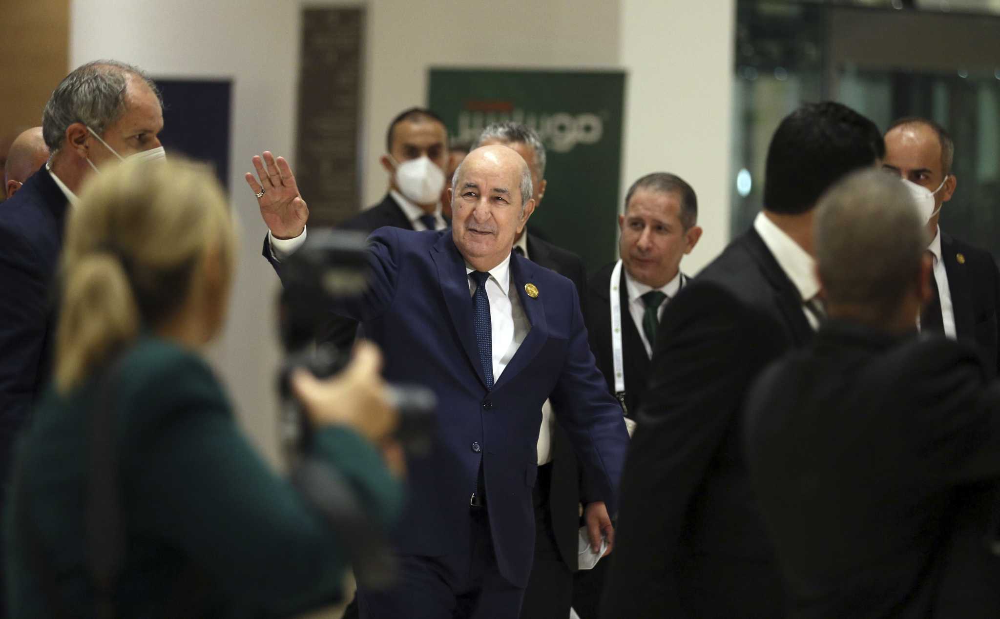 Algerian President Abdelmadjid Tebboune, center, arrives to attend the Arab Summit in Algiers, Algeria, Tuesday, Nov. 1, 2022. Arab leaders are meeting in Algeria at the 31st summit of the largest annual Arab conference to seek common ground on divisive issues in the region. The meeting comes against the backdrop of rising inflation, food and energy shortages, drought and soaring cost of living across the Middle East and Africa. (AP Photo/Anis Belghoul)