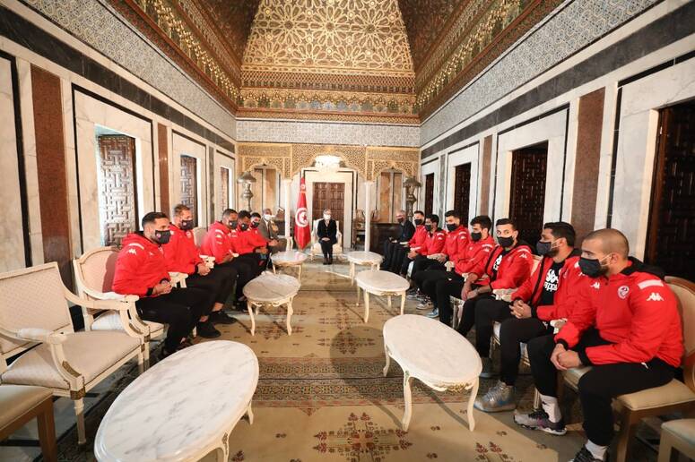 وأثنت بهذه المناسبة على ما بذله اللاعبون والإطار الفني من مجهودات في كأس العرب بقطر، ووصولهم الى المباراة النهائية. وتحادثت رئيسة الحكومة مع الإطار الفني واللاعبين واطلعت على برنامج تحضيرات المنتخب الذي يستعد لخوض منافسات كأس افريقيا للامم التي تحتضنها الكامرون من 09 جانفي إلى 06 فيفري 2022، داعية الجميع الى تحقيق أفضل النتائج في هذه المسابقة الافريقية الهامة.