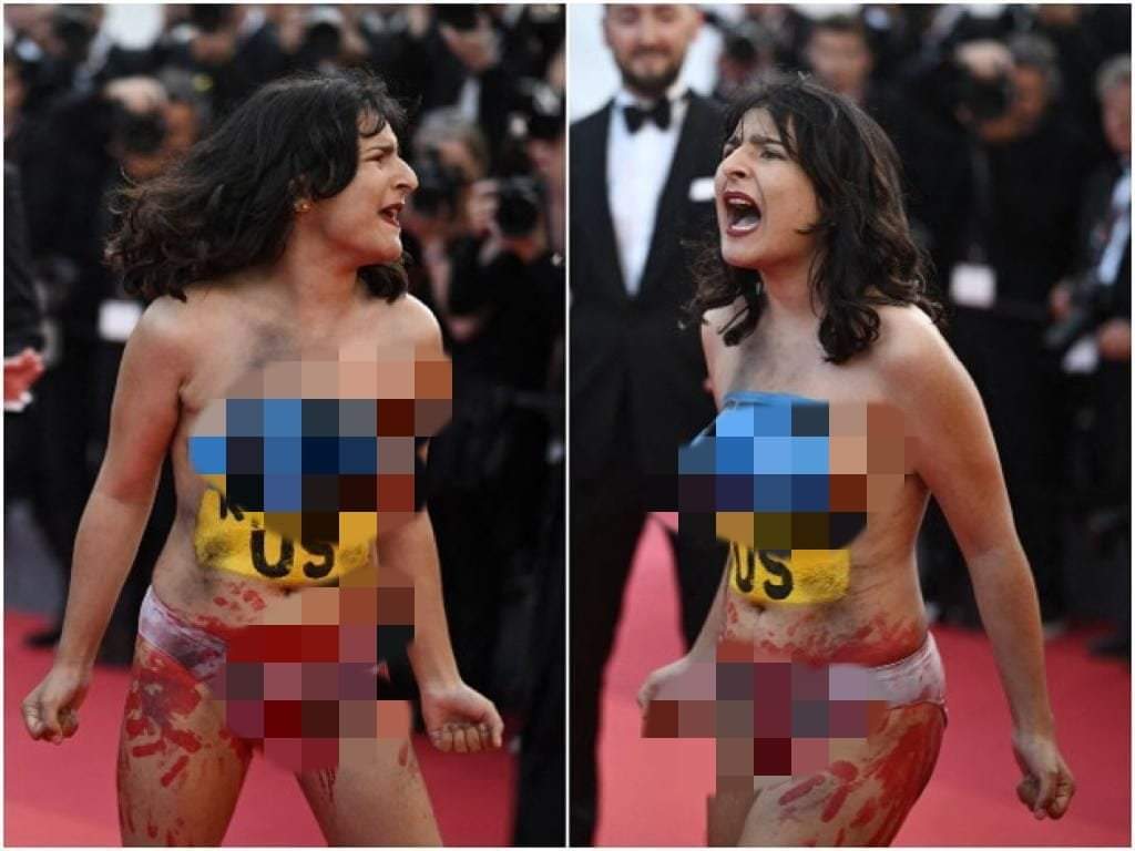 شهد مهرجان كان السينمائي، حدثا يتمثل في قفز امرأة عارية الصدر، على السجادة الحمراء للمهرجان في مدينة كان ترسم على صدرها ألوان العلم الأوكراني، ترتدي سروالاً قصيرًا ملونًا بطلاء أحمر، ومكتوب على جسدها “توقفوا عن اغتصابنا” مكتوبة باللونين الأزرق والأصفر لعلم أوكراني.