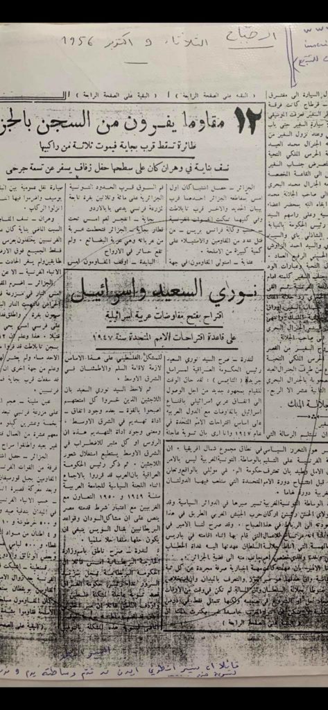 إذ عثرت أثناء  بحوث اشتغلت عليها على مقال نشرته جريدة الصباح يوم 9 أكتوبر 1956.