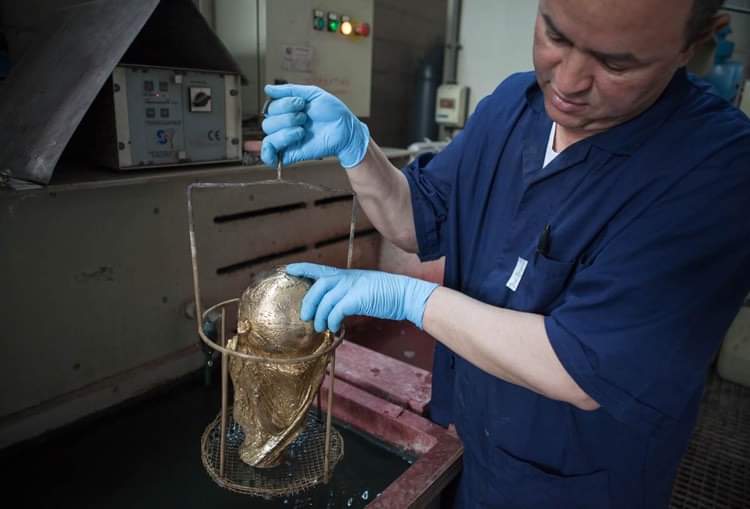 شارك السيد عبد القادر منذ انضمامه لشركة برتوني في تلميع خمسة نسخ من كأس العالم لكرة القدم هي: