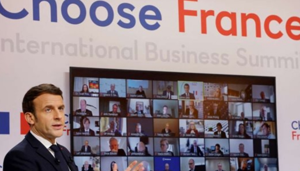 رحب الرئيس الفرنسي بهم وقادة الشركات والمؤسسات الأجنبية الكبيرة لإقناعهم بالاستثمار في فرنسا.