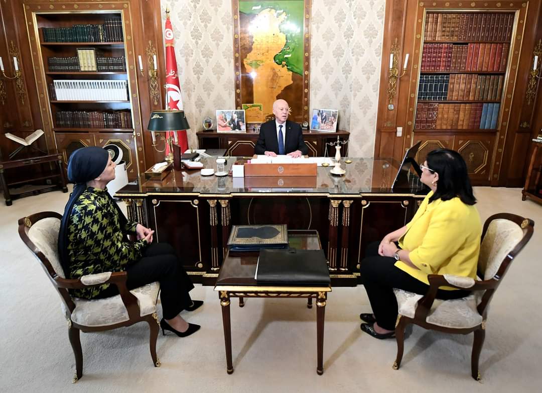 اجتمع رئيس الجمهورية، قيس سعيّد، اليوم الجمعة بقصر قرطاج، بوزيرة العدل، ليلى جفّال، ووزيرة المالية، سهام البوغديري نمصية.