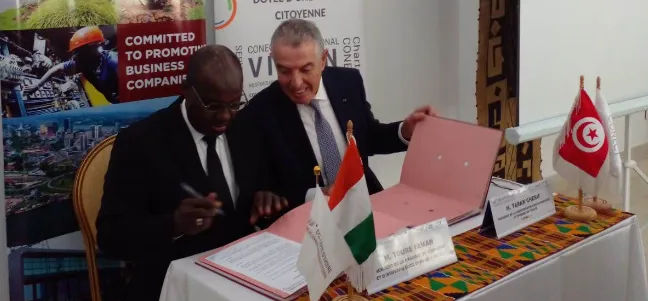 كما يتعهد الطرفان بالتعاون في مجال التجارة والاستثمار وتيسيرهما بين البلدين وتم توقيع هذه الاتفاقية في اختاتم أعمال المنتدى الاقتصادي التونسي الايفواري الذي انتظم اليوم وحضره مائة من رجال وسيدات الأعمال التونسيين والإيفواريين.