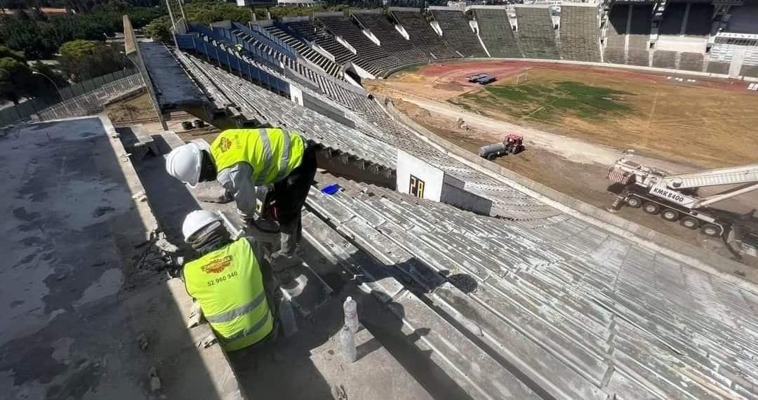 و أكد فرجاوي، ان الأشغال تقدمت وهي متواصلة بشكل طبيعي لإعادة تهيئة المدرجات والمنصة الشرفية ومنصة الصحفيين وكل ما له علاقة بالمضمار والعشب.