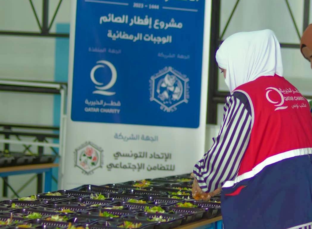 تواصل جمعية قطر الخيرية مكتب تونس جهودها الرامية إلى الوقوف إلى جانب التونسيين وقد حرصت خال شهر رمضان المعظم لهذا العام على توفير 58150 وجبة إفطار منها؛ 42750 وجبة بمعدل 1425 وجبة يوميا خلال العشرة الأيام الأولى والعشر الثانية.