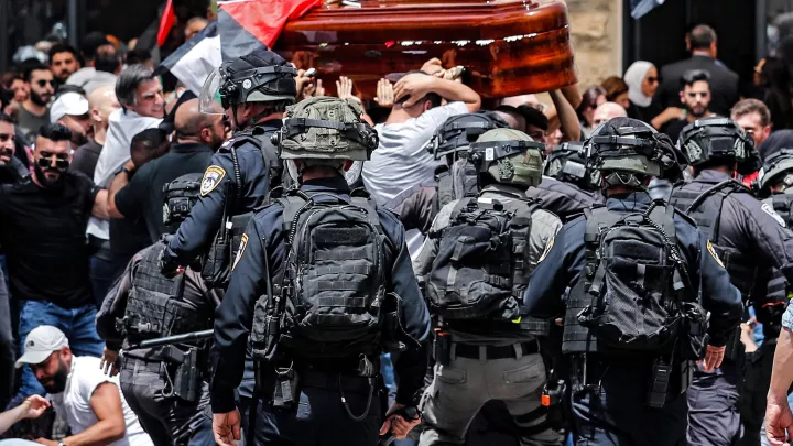 لا عجب إذن أن تكون هذه الكلمة أوّل ما يتبادر إلى الذهن لمّا نرى مشاهد جنازة الصحفية الفلسطينية شيرين أبو عاقلة التي اغتيلت يوم الأربعاء 11 مايو/أيار 2022 على يد الجيش الإسرائيلي. هجمت الشرطة الإسرائيلية على نعشها الذي كاد يسقط، ونزلت ضربًا بالهراوات على حامليه وعلى المتظاهرين، وأطلقت قنابل صوتية، ومزقت الأعلام الفلسطينية.