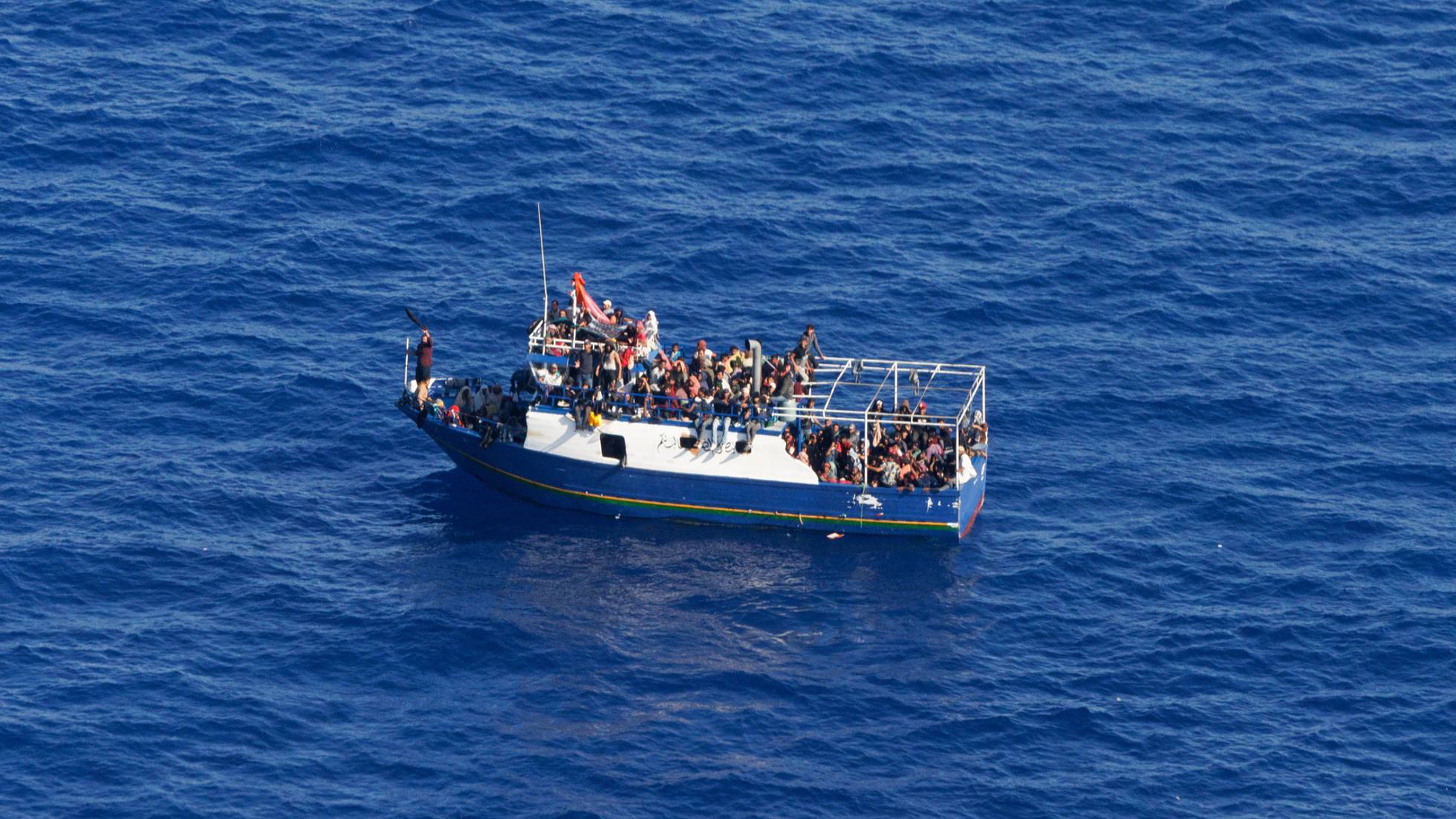 Reportage sur l'île italienne de Lampedusa première porte d'entrée des migrants en Europe Jour 6 : iici un bateau de pêche en détresse avec plus de 250 migrants à son bord