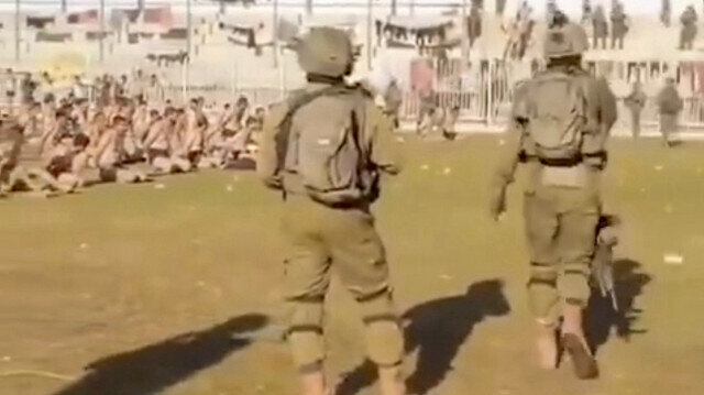وأظهرت مقاطع مصورة تداولتها، الاثنين، وسائل إعلام محلية وحسابات على وسائل التواصل الاجتماعي الكثير من المدنيين الفلسطينيين وهم محتجزون من الجنود الإسرائيليين ومتجمعون نصف عراة في ملعب بغزة.