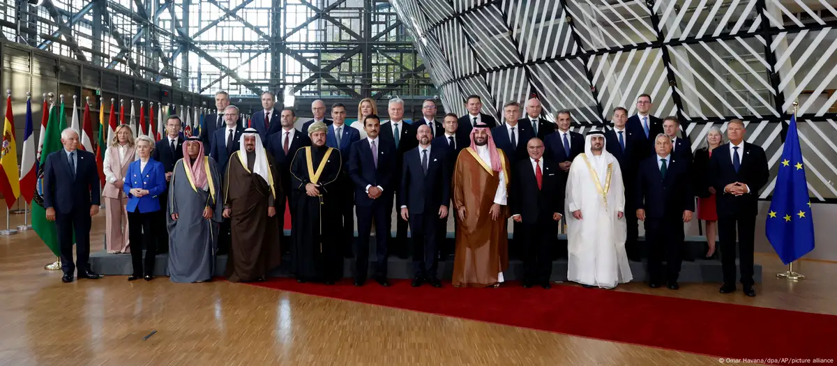 دعا زعماء الاتحاد الاوروبي ودول مجاس التعاون الخليجي الستّ في أول قمة لهم انتظمت في بروكسال، اليوم الأربعاء، “إلى وقف إطلاق النار الفوري والكامل في غزة وإطلاق الرهائن وتوزيع المساعدات على نطاق واسع”.وطالب البيان الختامي للقمة، بتنفيذ القرار الأممي 2735، بما في ذلك وقف إطلاق النار بغزة والإفراج عن المحتجزين الإسرائيليين.كما أدان البيان الهجمات ضد المدنيين والبنية التحتية، وحثّ الجميع على الوفاء بالتزاماتهم، وأكد الحاجة لتقديم المساعدات فورا وبلا شروط بفتح كل المعابر ودعم أعمال وكالة غوث وتشغيل اللاجئين . كما أشار إلى التزام القادة الخليجيين والأوروبيين بتحقيق حق الشعب الفلسطيني في تقرير المصير من خلال حل الدولتين.