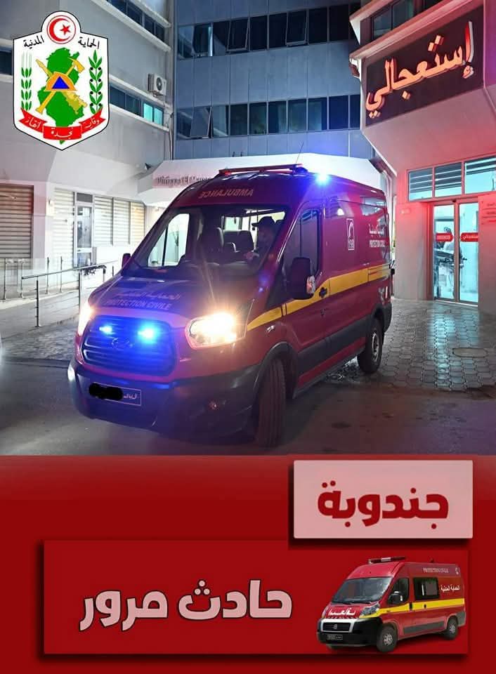 هذا و تدعوا الادارةالجهويةللحمايةالمدنيةبجندوبة جميع مستعملي الطريق الى الحذر و الانتباه أثناء السياقة و اتباع قواعد الجولان ضمان لسلامتكم و حفاظا على الأرواح البشرية.