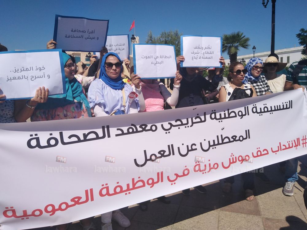وقالت هاجر عزوني، المتحدثة باسم « تنسيقيّة » خرّيجي معهد الصّحافة العاطّلين عن العمل، في تصريح لوكالة تونس إفريقيا للأنباء، إنّ هذه الوقفة « ليست احتجاجا بل التماسا نريد تقديمه إلى رئيس الجمهوريّة لتصل أصواتنا إليه وينظر في ملفّاتنا ويطّلع على حجم المعاناة التي نمرّ بها بعد أكثر من عشر سنوات من التّخرّج من معهد الصّحافة ».وتابعت عزّوني قائلة إنّ الكثيرين من أبناء معهد الصّحافة ممّن طالت بطالتهم « يجدون اليوم الآفاق مغلقة أمامهم رغم توفّر عديد الوظائف الشّاغرة في مجال الصّحافة والتي يمكن أن تستوعب خرّيجي المعهد على غرار الملحقين الصّحفيين بالوزارات وفروعها والبلديّات والمعتمديّات والمعاهد والإعداديّات، لتدريس مادّة التّربية على وسائل الإعلام ».واعتبرت في هذا السّياق أنّه « ليس من المقبول أن يقع تكوين أستاذ لتدريس مادّة التربية على وسائل الإعلام وتجاهل خرّيجي المعهد الذّين درسوا اختصاص الصّحافة والإعلام لأربع سنوات وأكثر ».وأضافت أنّ خريجي معهد الصّحافة « يطالبون بالقطع مع آليّات التشغيل الهشّ الذّي لا يضمن أدنى الحقوق التشغيلية ولا يحترم القوانين ».