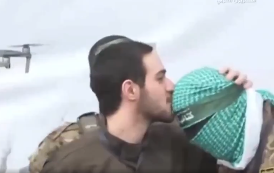أسير اسرائيلي يقبّل رأس مقاتلين من القسّام على المباشر