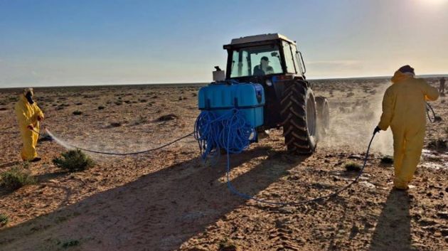 تواصلت عمليات التقصي والرصد والتدّخل ضد مجموعات الجراد الصحراوي بالجنوب التونسي (تطاوين، مدنين، قبلي، توزر وقابس) إلى حدود أمس الاحد. وقد بلغت المساحة الجملية التي تمّت مداواتها 930 هك، وفق بلاغ لوزارة اللاحة. وتوزعت العمليات بين مداواة أرضية على مساحة 635 هك منها 30 هك باستعمال مبيد بيولوجي شملت المناطق الحساسة ايكولوجيا (محمّية سيدي توي بولاية مدنين) ومداواة جوية باستعمال المروحية التابعة للشركة الوطنية لحماية النباتات وذلك على مساحة 295 هك بولاية تطاوين.
