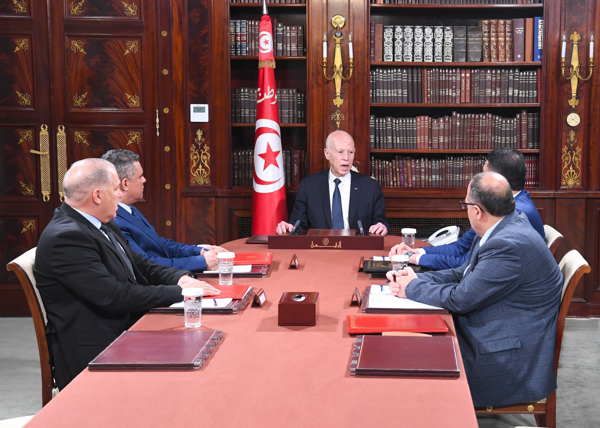استقبل رئيس الجمهورية قيس سعيّد، الإثنين بقصر قرطاج، كلاّ من وزير الداخلية، خالد النوري وكاتب الدولة لدى وزير الداخلية المكلف بالأمن الوطني، سفيان بالصادق ،والمدير العام للأمن الوطني،مراد سعيدان ،والمدير العام، آمر الحرس الوطني، حسين الغربي
