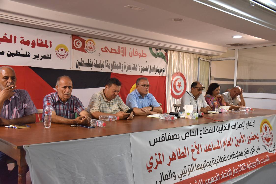 أقر اجتماع الإطارات النقابية للقطاع الخاص بصفاقس، الذي انعقد أمس السبت، بمقر الاتحاد الجهوي للشغل بصفاقس، مبدأ الإضراب الجهوي في القطاع الخاص بصفاقس.