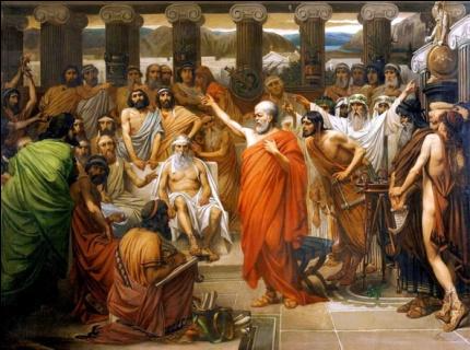سقراط (469/470-399 ق.م.) هو فيلسوف يوناني عاش بأثينا في القرن الخامس قبل المسيح وتوفي باختياره منتحرا بسمّ الشّوكران siguë la بعد أن حَكم عليه أعيان المدينة بالإعدام بسبب أفكاره مثل “الحياة بدون حرّية لا تستحقّ أن تُعاش”. ومن التهم الموجهة ضده: تشكيكه في تنظيم مدينة أثينا وعدم الاعتراف بالآلهة التي تعبدها الدولة وإدخال آلهة جديدة وأيضا من أجل سيرته إذ اتهموه بالتحرش الجنسي وإفساد الشباب.
