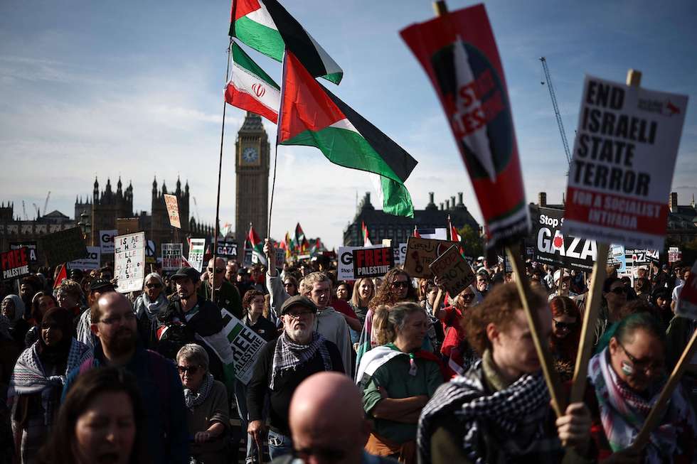 وذكر مراسل الأناضول أن مئات آلاف المتظاهرين تجمعوا قرب محطة إمبانكمينت في لندن بدعوة من حملة التضامن مع فلسطين “PSC”، ثم ساروا باتجاه شارع داونينغ حيث يقع مكتب رئيس الوزراء (رقم 10).