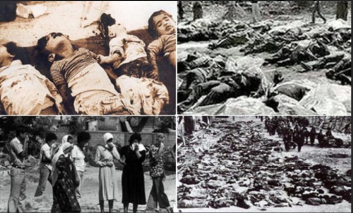 وتعرّضت النساء للاغتصاب والقتل وتمّ إعدام الأطفال رميا بالرشاشات قبل مغادرة رجال الميليشيا.