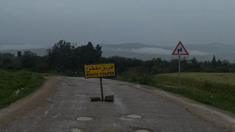 أعلنت الادارة الجهوية للحماية المدنية بولاية جندوبة عن انقطاع الطريق غير المرقمة على مستوى وادي الرغاي الذي يربط بين وادي مليز والدخايلية، وعلى مستوى معبر شمتو وادي مليز والطريق الجهوية 53 على مستوى جسر وادي البربر فرنانة وذلك نتيجة ارتفاع منسوب المياه بسبب الأمطار الغزيرة.
