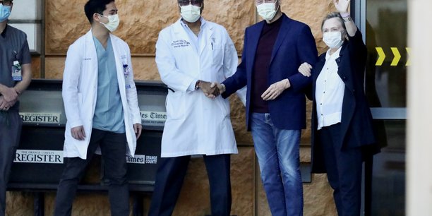 ÉTATS-UNIS – Bill Clinton, 75 ans, a quitté dimanche 17 octobre l’hôpital de Californie où il avait été admis mardi pour une infection, a annoncé le chef de l’équipe de médecins qui l’ont soigné. Des images en direct de la chaîne CNN l’ont montré, masque sur le visage et accompagné de son épouse Hillary, quitter l’établissement et lever le pouce face aux caméras.
