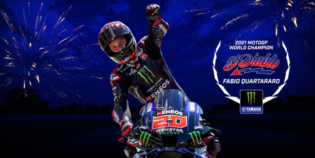MOTO – Fabio Quartararo, 22 ans, offre à la France son premier titre de champion du monde dans la catégorie reine de la vitesse moto, au terme du Grand Prix d’Emilie-Romagne ce dimanche. L’abandon sur chute de son dernier rival, l’Italien Francesco Bagnaia (Ducati), garantit au jeune pilote Yamaha d’avoir suffisamment d’avance en tête du classement des pilotes pour coiffer la couronne au terme des deux manches restant au calendrier de 2021. Ce Grand Prix était aussi le dernier de l’icône italienne Valentino Rossi (Yamaha-SRT), 10e, devant son public. Le septuple champion du monde voit dans le Niçois son héritier.