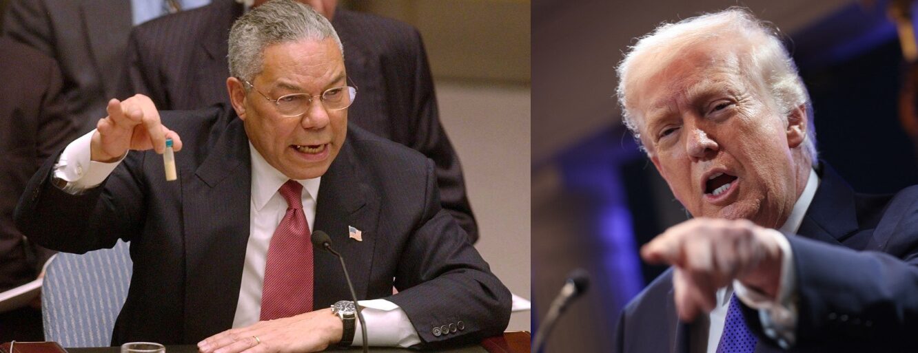 En écoutant Donald Trump justifier « les opérations de combat majeures » menées avec Israël contre l’Iran, on repense forcément à ce jour du 5 février 2003, quand, devant le conseil de sécurité des Nations unies, Colin Powell, le secrétaire d’Etat américain, affirme que l’Irak fabrique des armes de destruction massive et brandit une fiole d’anthrax. La guerre « préventive » débutera au mois de mars sans l’aval de l’ONU…