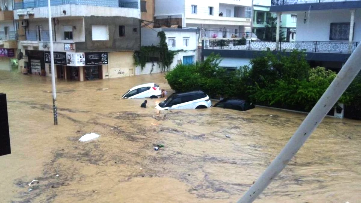 La route régionale n°69, au niveau de la zone de Zouitina à Utique, est coupée en raison des pluies abondantes.
