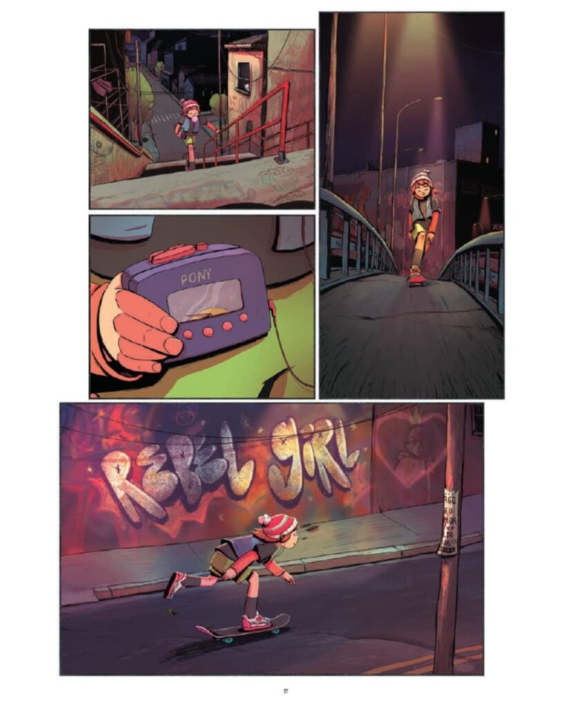 Les planches sont de toute beauté : vivantes, dynamiques, colorées…elles plongent l’amateur de 9ème art dans son enfance, dans un monde sans stress, sans mensonges où les rapports humains et l’amitié étaient sincères et c’est justement ce qu’est censé symboliser ce walkman qui appartient à l’héroïne principale. Tel que rappelé par la maison d’édition Ankama, « SuperPunk » (à ne pas confondre avec le jeu vidéo « CyberPunk 2077)est une aventure musicale aux références rock et punk, écrite par Mirtes Santana et illustrée par la plume pétillante de Guilherme Petreca (Shamisen, Kabuki) ! Savourez chacun des planches de cette aventure qui ravira petits et grands.