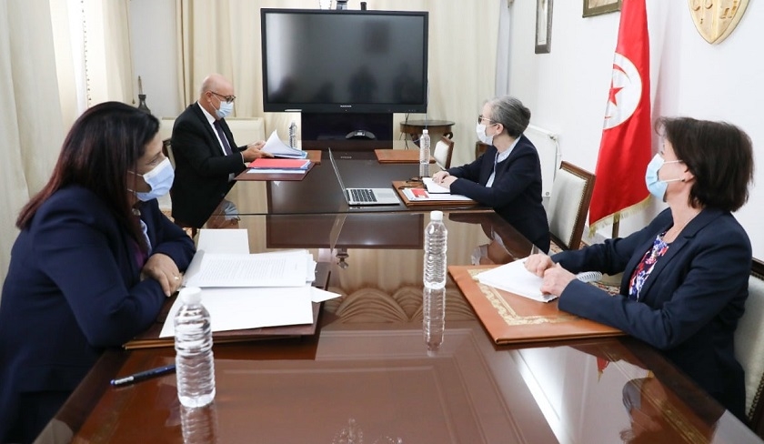 Najla Bouden a également reçu le ministre de la Santé, Ali Mrabet, qui lui a présenté un rapport détaillé sur la situation épidémiologique du Covid-19 et l’avancement des campagnes de vaccination.