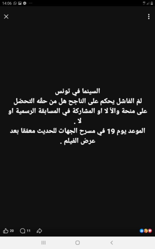 L’auteur a à ce titre convié les journalistes à l’avant-première nationale de son film prévue pour le 19 décembre prochain à la Cité de la culture et lors de laquelle, selon ses propres mots, il fera certaines révélations (concernant la commission ? certains responsables du ministère des affaires culturelle ?….).