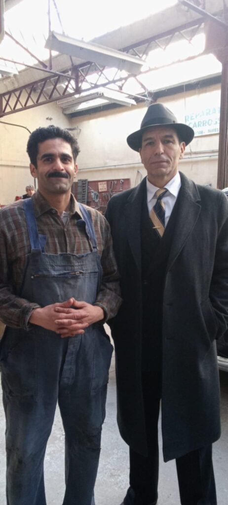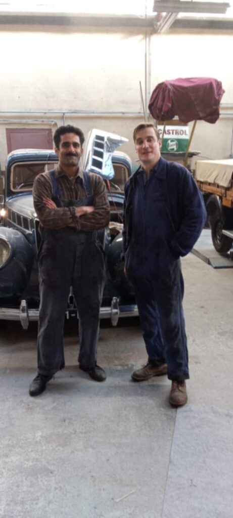 Lorsque j’ai été retenu pour le rôle d’un garagiste, je n’ai pu dissimuler ma joie. Et ce pour de nombreuses raisons. Les essayages de costumes avaient eu lieu le 18 février 2025 à l’hôtel « Arletti Palace » situé dans la ville de Vichy. Les maquilleurs ont en profité pour me tailler la moustache et me faire une coupe de cheveux dignes des années 30, 40 et 50, période à laquelle se déroule l’histoire. Quelques semaines plus tard, toute l’équipe technique s’est retrouvée dans un garage rénové situé dans le quartier historique de Croix-rousse dans le centre-ville de Lyon. C’était tout simplement bluffant : les détails, l’ambiance et surtout le garage et tout ce qu’il comprend d’outils et de voitures datant de la seconde guerre mondiale et louées à un collectionneur était immersif.